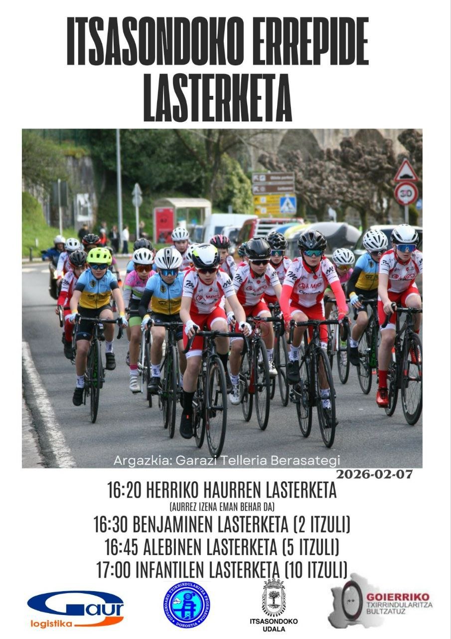 Datorren otsailaren 7an Itsasondoko errepide lasterketa jokatuko da. Herriko haurrek lasterketan parte hartu ahal izateko, ondorengo linkean dagoen inprimakia bete beharko da _*otsailaren 4a baino lehen!*_ (https://forms.gle/5ucD3N9wptwZ5pt2A) Edozein zalantza galdetu lasai 617275343 telefono zenbakira idatzi edota deitu.
